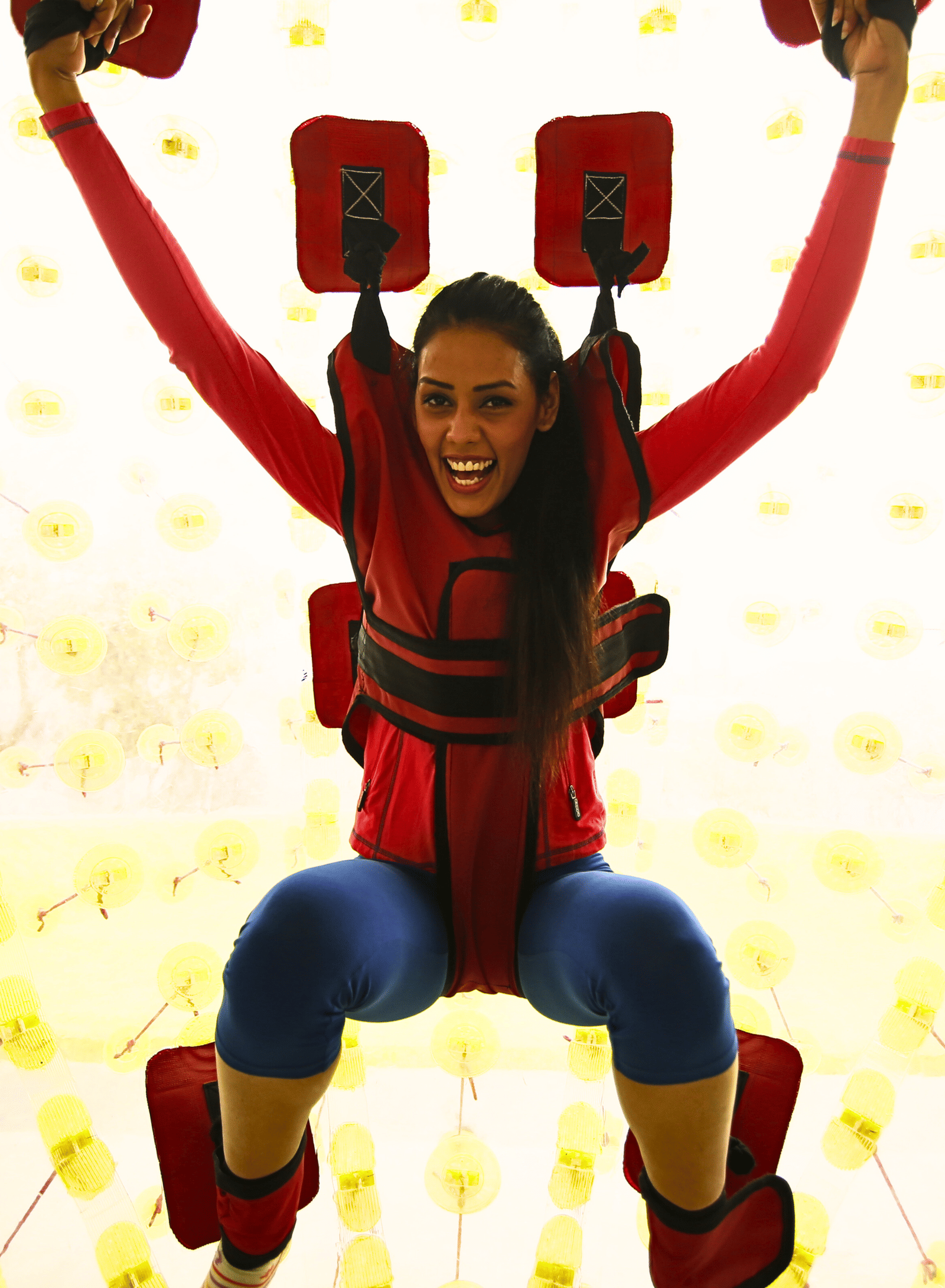 Become a player in this life-sized foosball game, strapped to ropes and aiming to score.