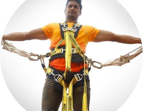 A full body harness will be attached to the participant. The elastic ropes and the carabineers of the systems are checked and tested on daily basis.